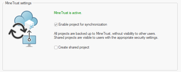 9. Providing the MineTrust is active status displays, check Enable project for synchronization. If unchecked, no data synchronization will occur during the project session.