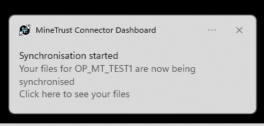 2. MineTrust is active – When MineTrust Connector is configured and is currently running, you can start synchronization.