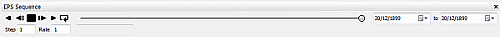 The Sequence control bar controls the playback of animated data the 3D window. Data is based on animation data synchronized with a DTS schedule.
