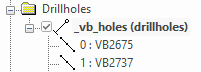 Note: Whilst a drillhole object can contain any number of drillholes. only the first 500 are displayed in the third level menu.