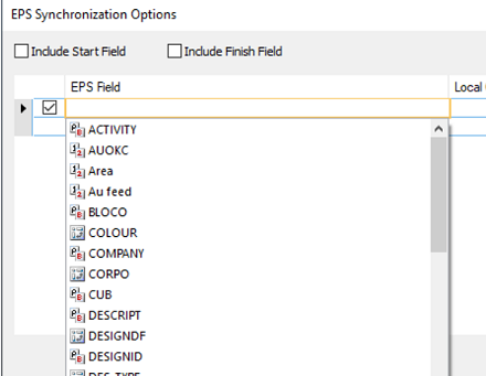 Include Start/End Field: select one or both check boxes to include/exclude the start/finish datetime field in the synchronization of data between your application and EPS.