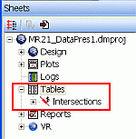 At this stage, if an Intersections table does not exist i.e. is not loaded, a new table named Intersections is created. It is listed in the Sheets control bar, Tables folder: