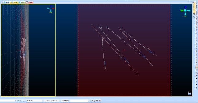 13. The section is moved (using the freeform view) to expose drillholes further into the sample set; as before, click into the freeform view to activate it, and enable the Interactive Section Editor.