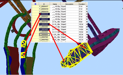 Enable the Select toggle. This will enable Data Selection mode, allowing you to click on a wireframe segment in the 3D window, whereupon the corresponding activity in DTS will be highlighted. Alternatively, select a record in DTS and the relevant wireframe segment will become highlighted.