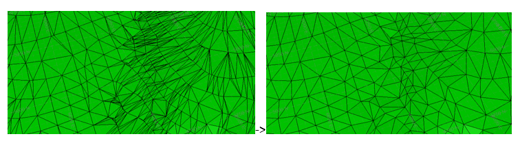 Remove edges less than—some modelling processes may generate small sliver triangles which can complicate downstream processes or simply increase wireframe file size for no gain. Removing small edges can be thought of as a very simple form of decimation, to remove these trivial triangles. When a triangle edge is encountered which is less than the value specified, the edge is collapsed to one of the existing vertices, resulting in the smaller triangle being deleted and one of the adjacent triangles growing to fill the gap.