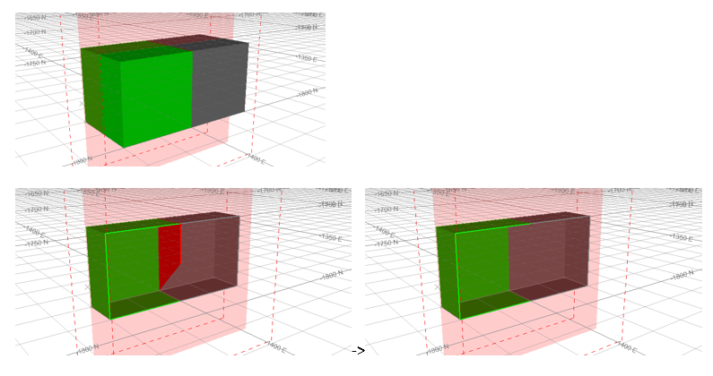Remove volumes less than—after a series of complicated wireframe processes, e.g. multiple Booleans, or isoshell generations, it’s sometimes possible to have a series of small volumes produced which can be attributed to small errors in the original digitising, the result of re-triangulation causing similar surfaces to become slightly different or other reasons. The wireframe cleaning utility allows for all closed volumes below a specified amount to be removed, leaving only the larger, more significant volumes.