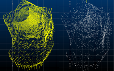 An example of a raw input point cloud (left) and cubic subdivision subsampling on the right. Note the absence of data banding.