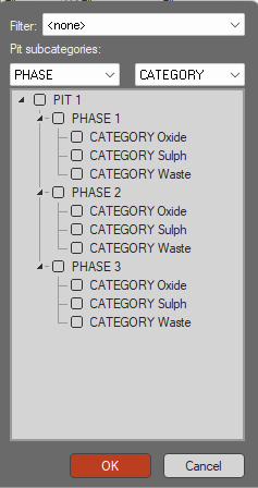 Pick the Pit subcategories that reflect the important material sources. For example, if you wanted to ensure targets are set by PHASE and CATEGORY, select these attributes from the respective lists.