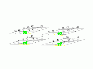 The Lift Entry Blocks are those stockpile block outlines which define the entry point for a specific stockpile lift; each lift is allowed only one entry block. When the unsequenced data are first loaded, the Block values are absent and the Lift values are displayed in red. These then change to black once the lift entry blocks have been defined. |