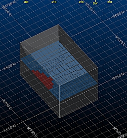 - The MSO shape framework extents can be identical, but are specified independently - the Framework Extents are represented by a cuboid within which your stope shapes will be generated. Normally, the shape framework will extend beyond the extents of the model in each direction, fully encapsulating it. You can easily check this is the case using the Extents Visualization controls at the bottom of the panel.