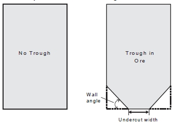 MSO) accounts for the waste dilution and/or ore loss regarding the shape of the a trough-undercut or -overcut during the optimization process. The undercut provides an optimized rectangular stope-shape with the two bottom edges “bevelled” off parallel to the orientation axis to form the trough-undercut side walls, as shown above. A trough overcut has an identical definition but is applied to the roof.