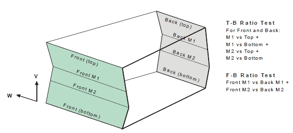 As with 4 point outlines it is possible to test the ratio of the stope widths at the additional vertices against the top-bottom widths, and also the ratio of front-back widths, known in Studio as the "Middle Length Ratio".