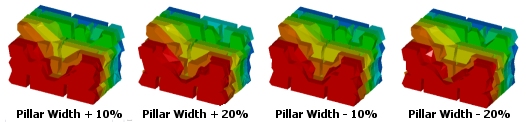 MSO can also be used to demonstrate the impact of parameter changes on the resulting stope shapes, which will be optimal for each setup. A useful way of determining how "sensitive" your scenario is to a particular parameter (such as slice interval, dilution settings, pillar widths and so on) is to create a report that indicates the results of a run where the value of a certain parameter, or group of parameters is slightly different each time.
