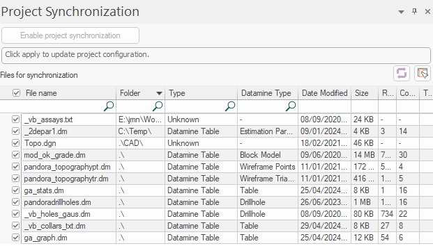 The Project Synchronisation control bar connects your project to Datamine's MineTrust data sharing service.
