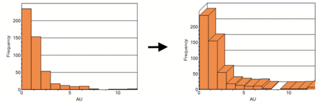 Histograms can be displayed as either 'flat' (orthogonal) items or as isometrically rotated graphics. By default, all histograms are generated in the flat mode, but this can be altered by selecting the 3D Mode icon