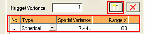 Tip: The variogram model's nugget, spatial variance(s) and range parameters can also be interactively positioned in the preview pane once the model's structure(s) has been added to the model parameter pane with the Add New Structure button. See Interactive Structure Editing.