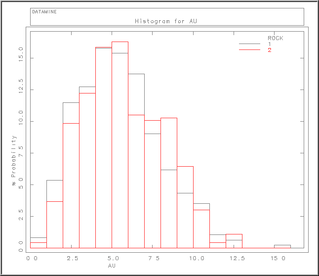 The following chart example shows AU histograms for the two ROCK values displayed on the same plot.