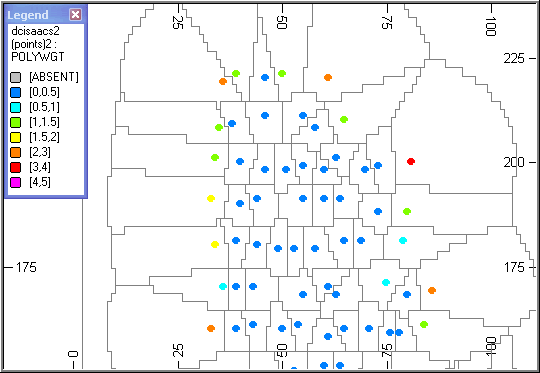 The POLYDC process calculates a set of declustered weights for a set of sample data using the polyhedra method.
