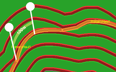 It can be useful to check the length of a road segment with query-string, then adjust the pit either generally, or for one or more benches in order to create a practical road network layout.