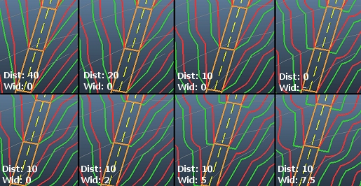 Fixed Road Taper Width: this is the offset that can be applied to the end of the fixed road at the taper point. For example: