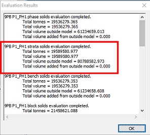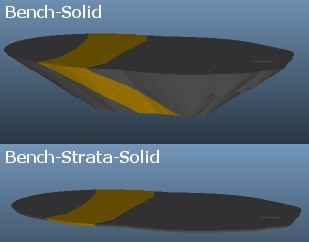This allows the phase solid to be split into "strata solids" later on, using the Strata Solids task. These solids will be further subdivided into benches (either using elevation values, or using 3D bench surfaces, depending on how you used the Define Benches task previously). The generated "bench-strata-solids" preserve the original strata data.
