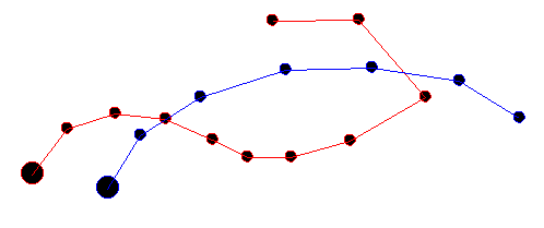 Select the string that you wish to break. In the following example, the red string is cut by the blue string - the control string: