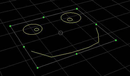 Data can be edited relative to the screen (that is, around a plane that is orthogonal to the current camera view). Note how the bounding box is shown as a 'flat' rectangle: