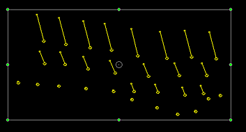 When the command is initiated, a bounding box is generated around the selected strings. This box consists of 8 green "handles", and a point of rotation symbol in the centre, for example: