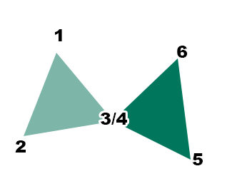 If a subsequent triangle is connected to the original by only one point, snap to the shared point and define another two points elsewhere. For example, in the image below, point (4) is snapped to the position of point (3):