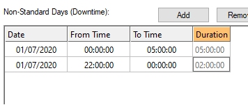 - by the right hand side ‘Non-standard days (Downtime)’ section click Add.