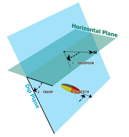 ANGLE1 TRDIPDIR Direction of the dip plane from North.