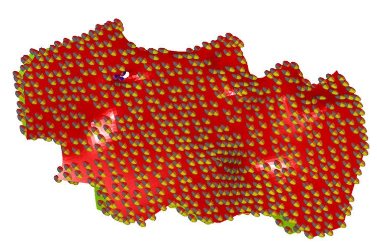 When running DA, you can view the search volume and variogram model as an ellipsoid. This is useful to validate the orientation of the search aligns with the orientation of the surface for DA.