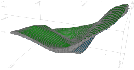 Here's an example of a block model shown with hangingwall and footwall surfaces in WCS: