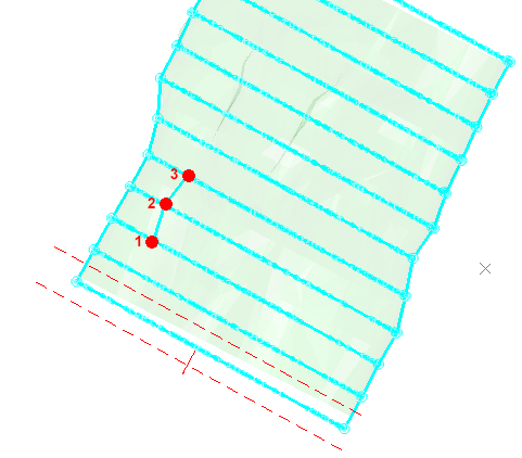 Between-Section Tags—Tag strings to control how each of the hanging wall and end wall strings are linked to each other. A single string can link one or more sections but - importantly - concurrent sections must be linked. For example, this is okay (digitized string points are shown larger than normal):