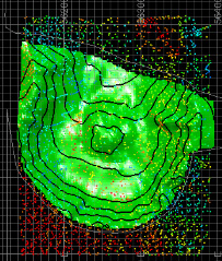 Grade contouring is one key application for the generate-contours-from-points command. Grade contours generated in this way loosely mimics the processes of grade interpolation in processes such as GRADE and ESTIMA, and other interactive functions Studio products, including Advanced Estimation.