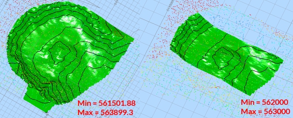 In this example, you will create a series of contour/elevation strings from a loaded points file representing a topography. A 3D surface is generated, and both strings and surface will be clipped using an external string file containing 2 separate polygons.