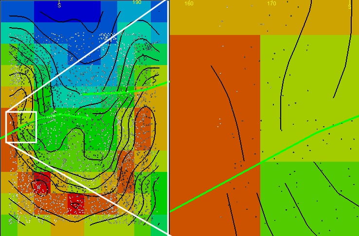 Using a sparse 10 x 10 grid is estimated using the Minimum Curvature option. The lowest