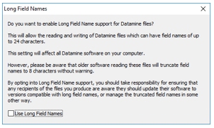 Subsequent use of all applications on the same PC will permit long field name reading and writing. -