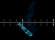 Grids are used to indicate the overall dimensions along any of the view axes (XYZ). One of the limitations of a standard flat grid is that it is often difficult to sense or interpret the extent of a 3D data object in a direction that is not orthogonal to the view. In the past, this conundrum has been resolved by allowing non-orthogonal grids to be viewed in the Design and Plots windows, and this type of measure is a very useful aid for denoting a measurement that is perpendicular to the viewing direction. For example;