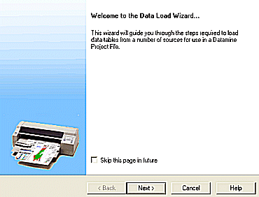 On running the Data Load Wizard for the first time, you will see the Welcome screen as displayed above. You can, if you wish, skip this screen by selecting the Skip this page in future check box.