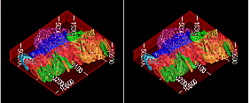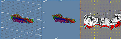 You can also define a Border. This is a solid line, drawn according to the color specified on the More Line Formatting tab, that surrounds the perimeter of the displayed. This is more obvious for grids that are 'snapped' to the boundary of an existing object (this feature is set using the Advanced Options tab). The Border color is also used to set up the 3D shading color used for grids of a [3D Hull] dialog. Hence the following image shows (right) a grid snapped to the hull of a wireframe object without a border and (left) the same grid with an applied border: