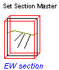 Defining a section master allows you to create multiple views in plan, transverse and 3D all using the same section definition. Changing the section definition (width, dip and azimuth) in one view is automatically applied to all views that use the section master. Changing the section position (using the Next and Previous commands) in any one of these views is applied to all views.