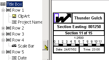 Below is an example of a title box with a bitmap in the top row and a scale bar inserted in row 4. The complete title box can be copied and pasted onto other plots if desired.