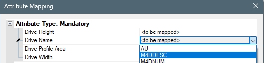 The Attribute Mapping dialog can be displayed either at the point of adding design data to the database or prior to generating a development report.