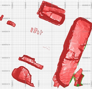 - Wireframe Volume: this represents the cut & fill solids created by your reporting task. This is shown in Datamine's Table Previewer application. Only displayed if it is possible to construct a 3-dimensional volume from the input data of your report.