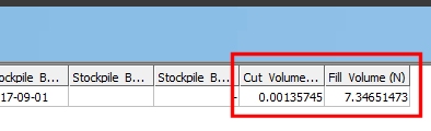 This table will contain two numeric attributes; Cut_Volume and Fill_Volume, representing the cut and fill volumes for the current report, e.g.: