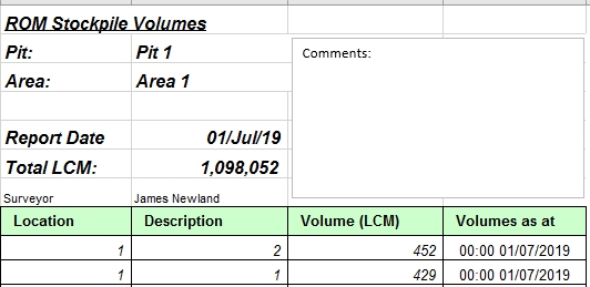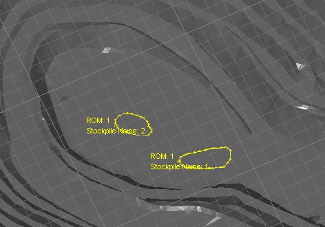 - ROMNAME: the name of the current run-of-mine surface upon which the stockpiles are positioned.