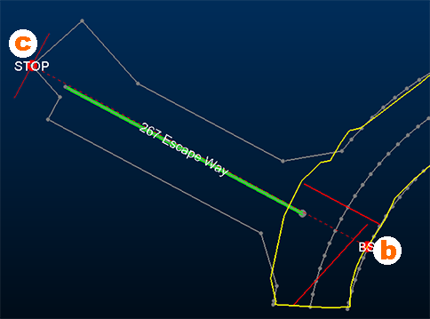 - Select a position to indicate the direction and extent of excavation. A "STOP" indicator and a dashed T-junction line displays.