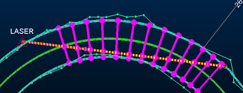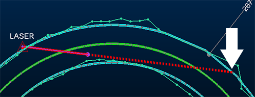 The laser string is highlighted and a "LASER" indicator appears.Note: The first time a laser line is picked in a project session can take a short while to complete. Subsequent picking is quicker.