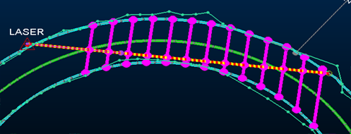 Tip: Filter, pan and zoom the view to ensure the laser location and final laser destination on a surveyed string is clearly visible.